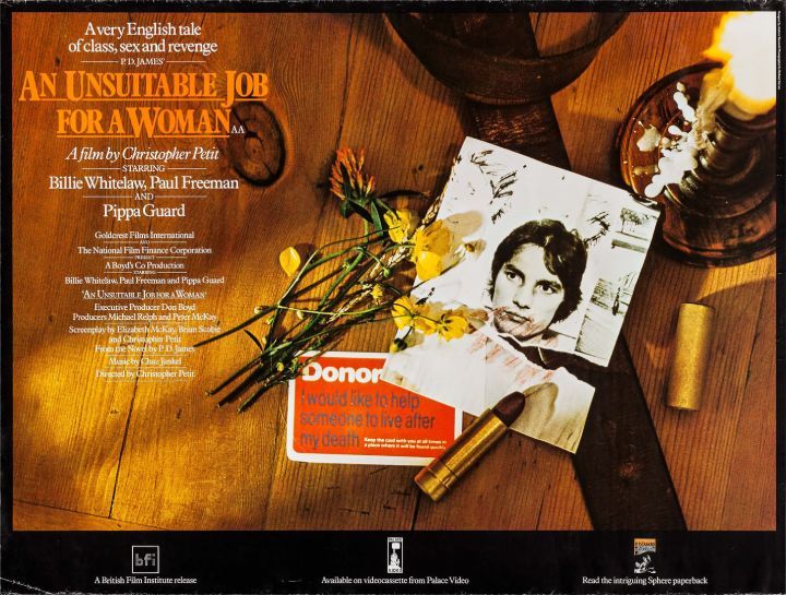 At time of writing, An Unsuitable Job for a Woman does not appear to be available to rent off of any major services. It is however available to stream via both BritBox's own service and their sub-channel on Amazon. I recommend JustWatch for keeping up with where films are streaming (including this one!). While Cinema Paradiso affords the film a page (because I specifically asked them to add it), there is not presently a DVD or Blu-Ray release available in the UK. (Update – 01 Dec. 2021: A 4k restoration for a Blu-Ray edition has been announced for release in February 2022.)